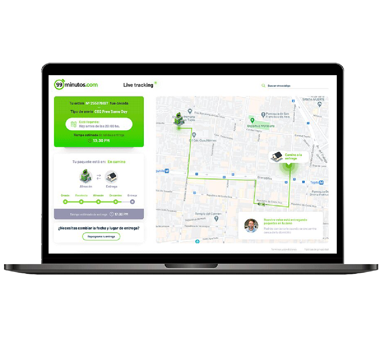 99 minutos currently operates within 40 major markets across Mexico, Chile, Colombia, and Peru and offers four services: less than 99 minutes delivery, same-day delivery, next-day delivery, and CO2-free delivery.